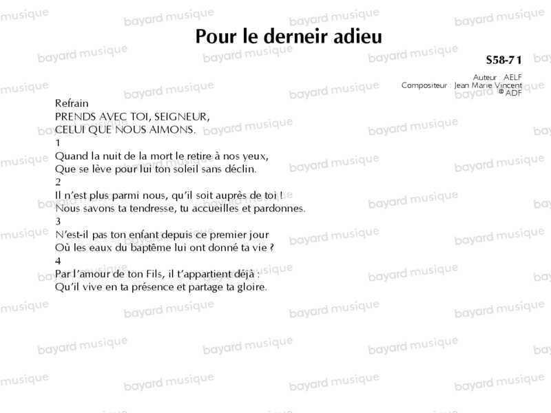 Dernier adieu : on peut chanter les invocations lues à ce moment de la célébration, avec refrain repris par l'assemblée.