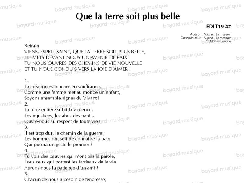 Chant d\'ouverture pour le temps pascal à l\'approche de la Pentecôte, ou lors d\'une messe pour la paix ou pour la justice.