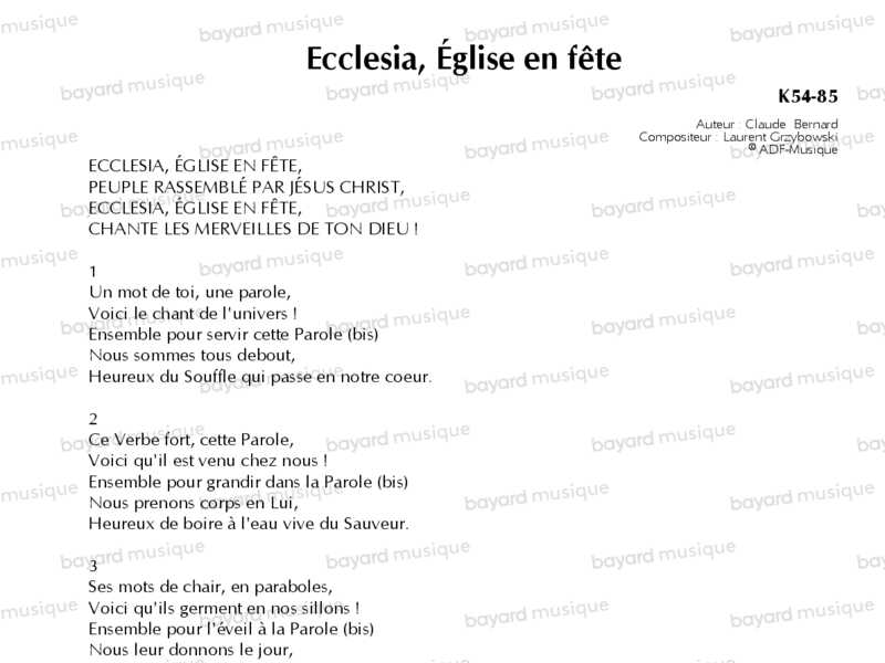 Chant pour le congrès Ecclesia 2007, Servir la Parole de Dieu