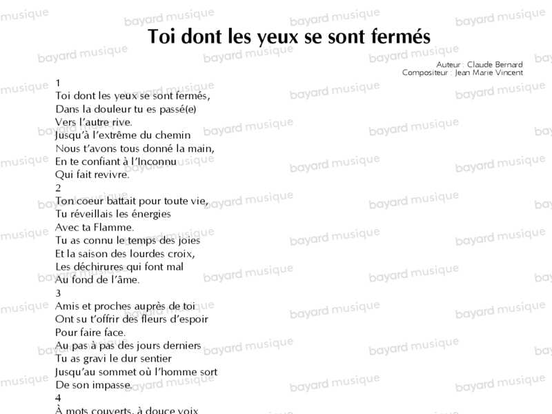 Ce chant a été créé à l'occasion de la mort d'un proche. Se chante plutôt au moment de l'absoute, ou au cimetière. Si l'on ne peut chanter ce texte, il peut être dit comme un poème.
