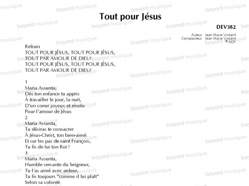 En plus du refrain chanté par tous – dont le texte ne fait que reprendre l'une des paroles de la Bienheureuse – il est important que toute l'assemblée chante au moins le début de chaque couplet : "MARIA ASSUNTA".