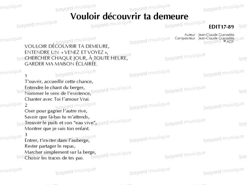 Vouloir découvrir ta demeure - EDIT17-89