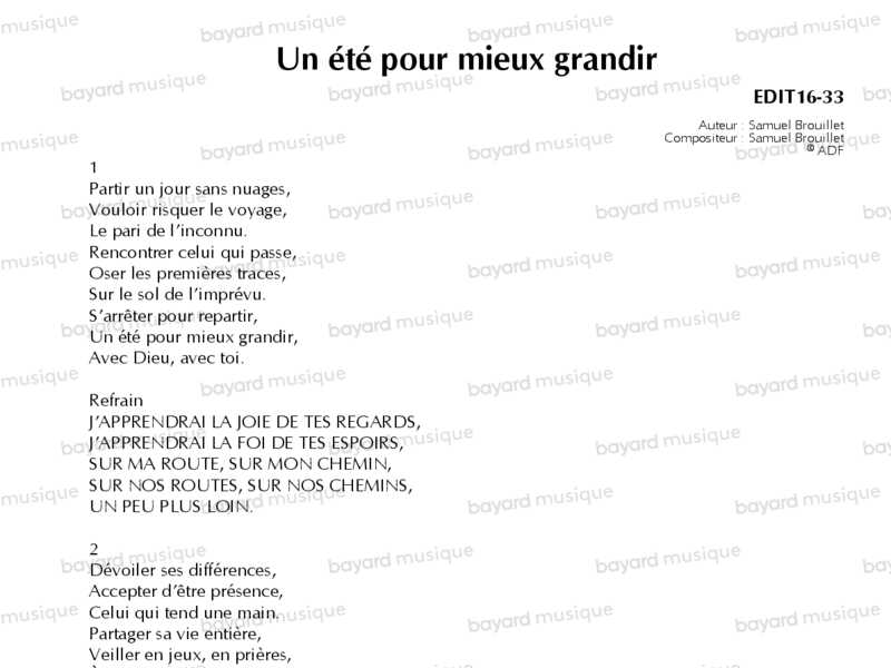 est axé sur la rencontre de l'autre et de Dieu, à travers les différentes étapes d'un camp ou de tout autre temps en groupe. J'espère que ceux qui ne font pas de camp pourront, à travers ce chant, comprendre l'extraordinaire expérience d'un camp MEJ !