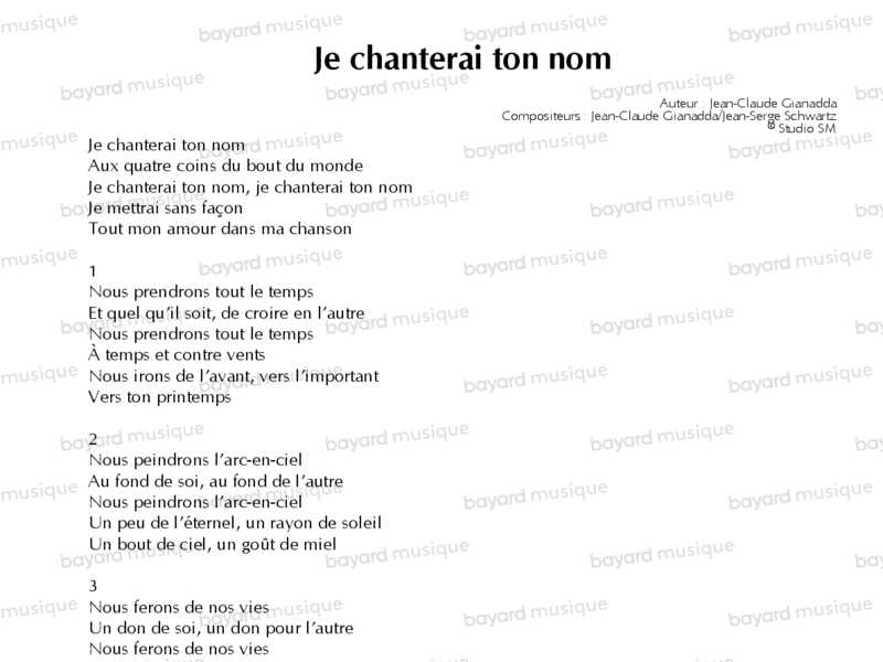 Compositeur : Jean-Claude Gianadda,Jean-Serge Schwartz