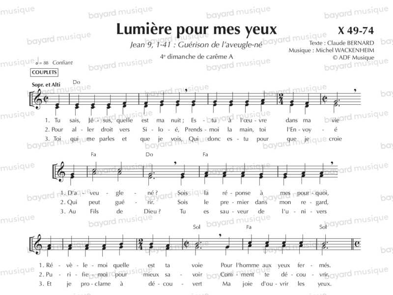 Partition pour le 4e dimanche de Carême A (correspond à l'enregistrement de l'album "Au pas à pas de l'Évangile selon saint Jean")