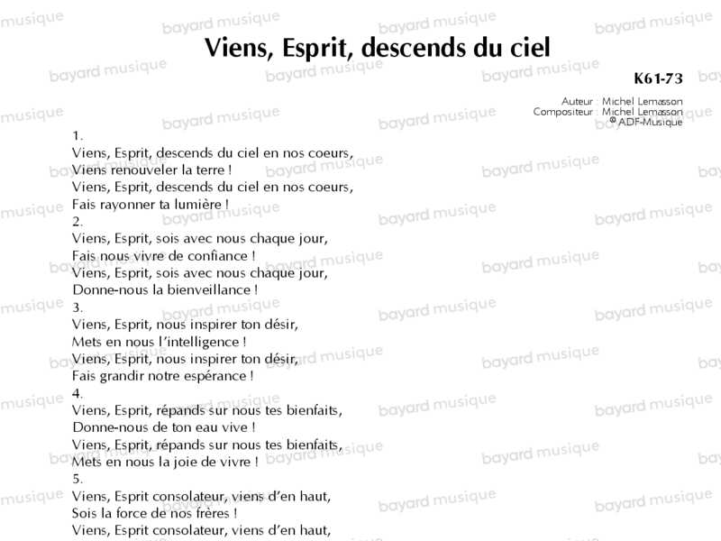 Viens, Esprit, descends du ciel - K61-73