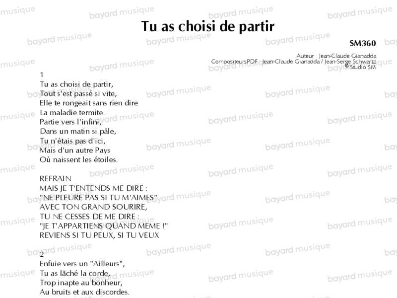 Compositeur : Jean-Claude Gianadda,Jean-Serge Schwartz