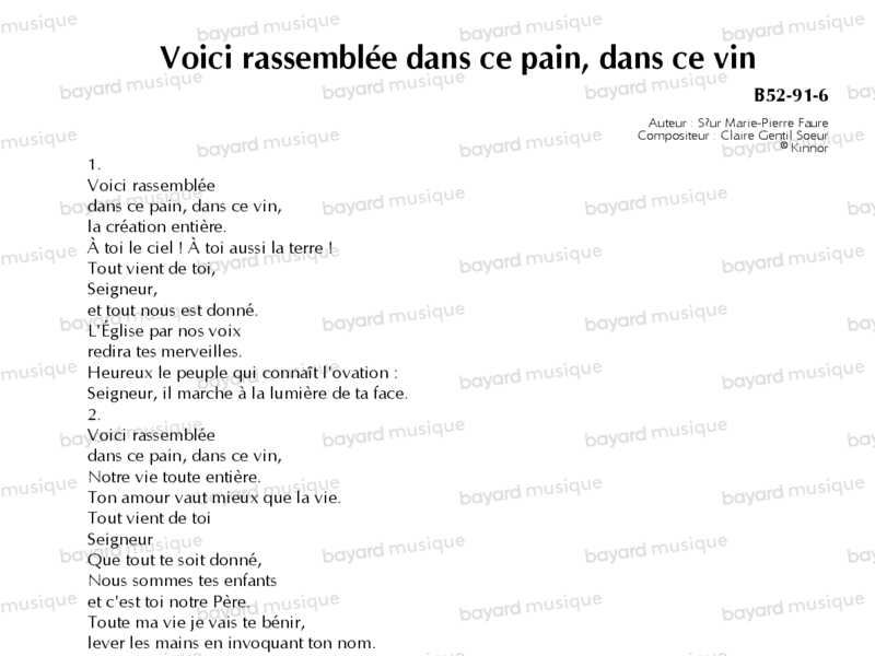 Voici rassemblée dans ce pain, dans ce vin - B52-91-6