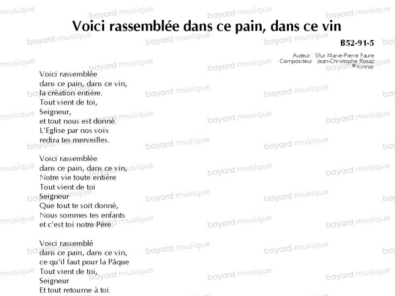 Voici rassemblée dans ce pain, dans ce vin - B52-91-5