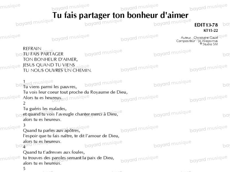 Tu fais partager ton bonheur d'aimer - EDIT13-78