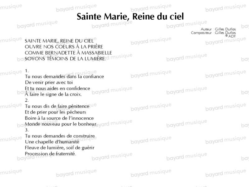 Chant à Notre Dame de Lourdes qui reprend son message à Bernadette.