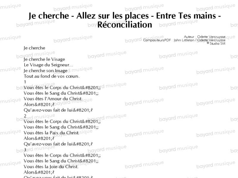 Je cherche - Allez sur les places - Entre Tes mains - Réconciliation
