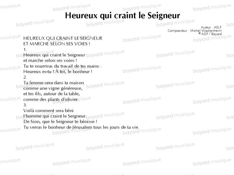 Heureux qui craint le Seigneur