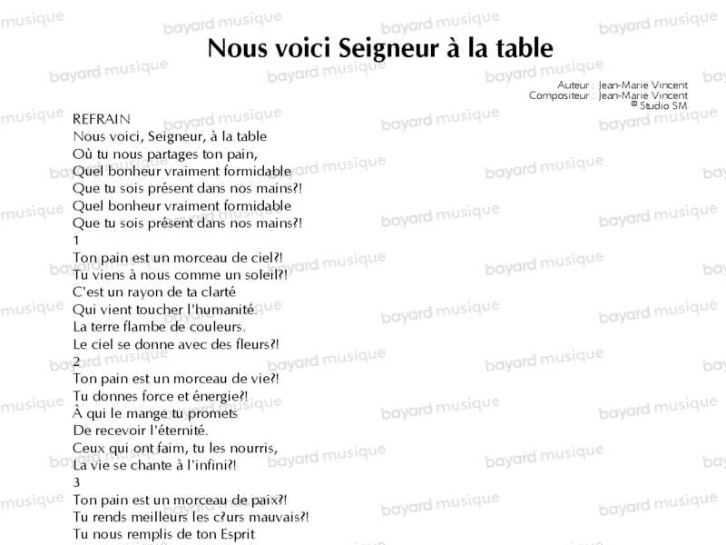 Nous voici Seigneur à la table