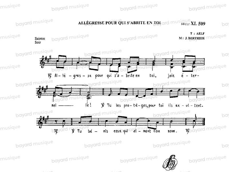 Allegresse pour qui s'abrite en toi r. bref - Saintes - XL509