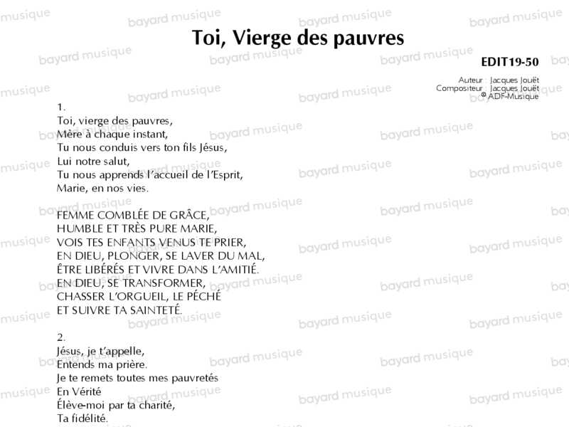 Ce chant convient pour des pèlerinages – particulièrement celui de Banneux – et célébrations mariales