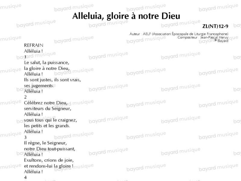 Alleluia, gloire à notre Dieu - ZL(NT)12-9