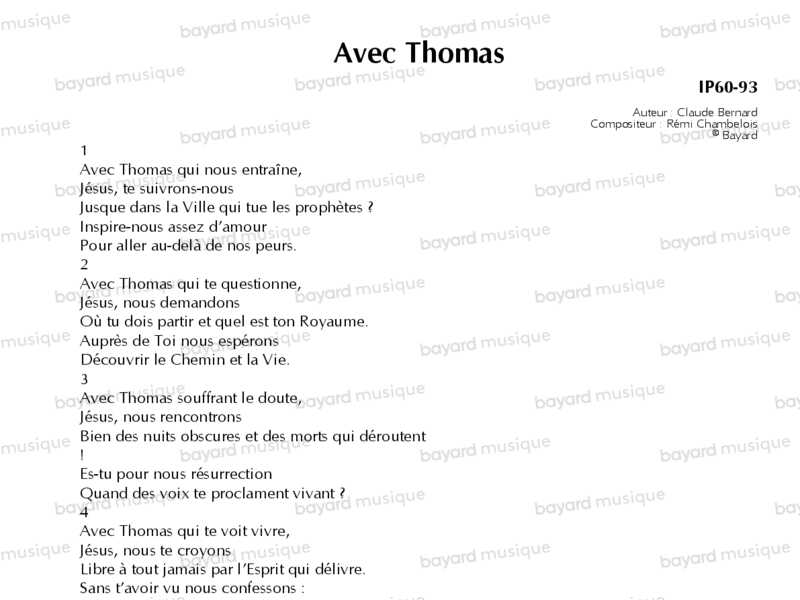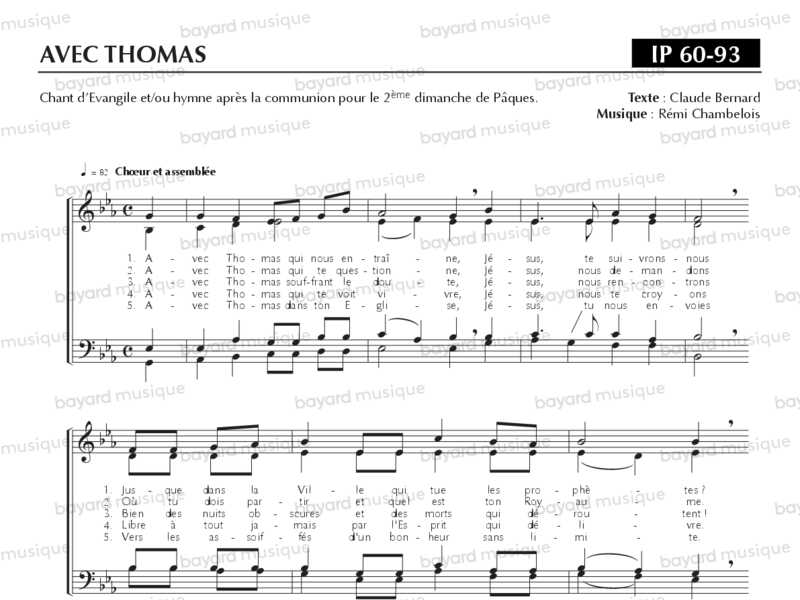 Chant d'Evangile et/ou hymne après la communion, notamment le 2ème dimanche de Pâques A, B et C.