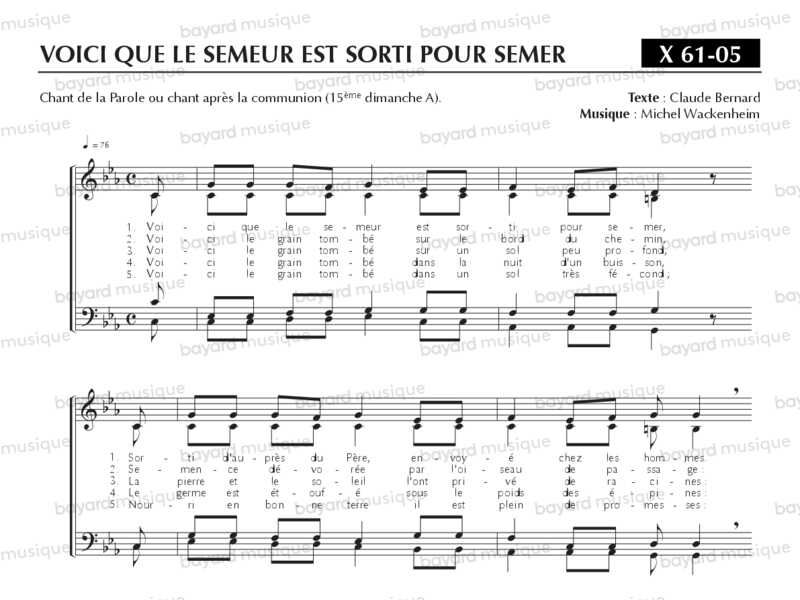 Chant de la Parole ou chant après la communion pour le 15ème dimanche A.