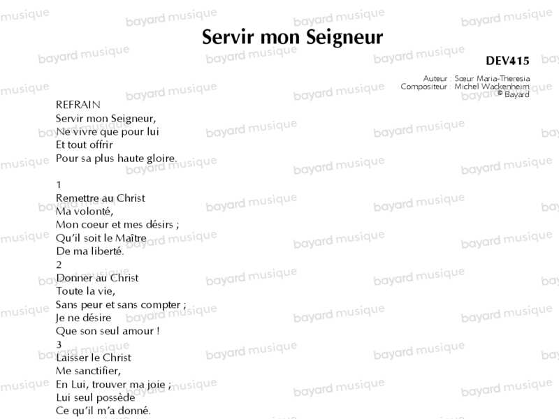 Servir mon Seigneur - DEV415