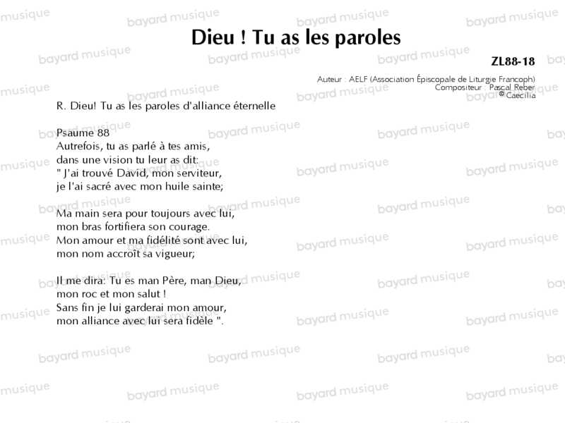 Dieu ! Tu as les paroles - ZL88-18