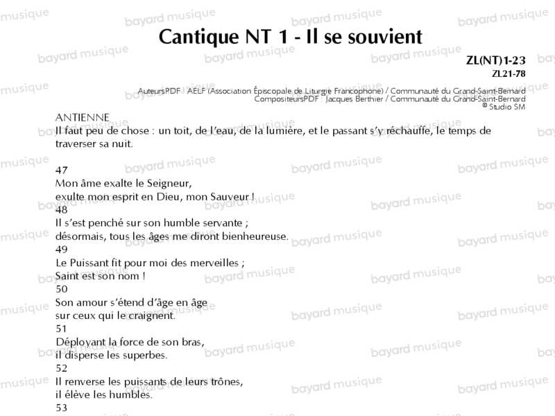 Cantique NT 1 - Il se souvient - ZL(NT)1-23