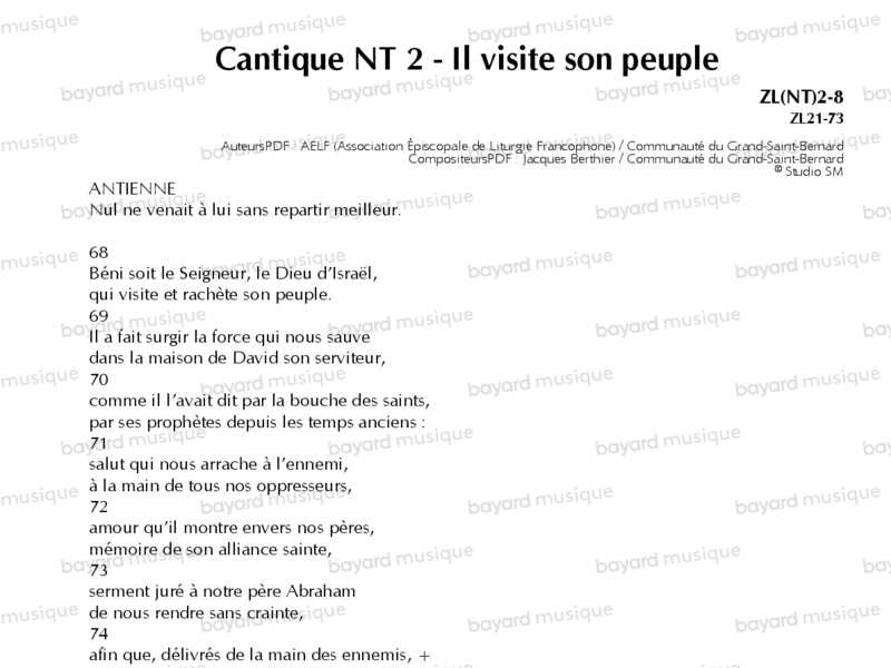 Cantique NT 2 - Il visite son peuple - ZL(NT)2-8
