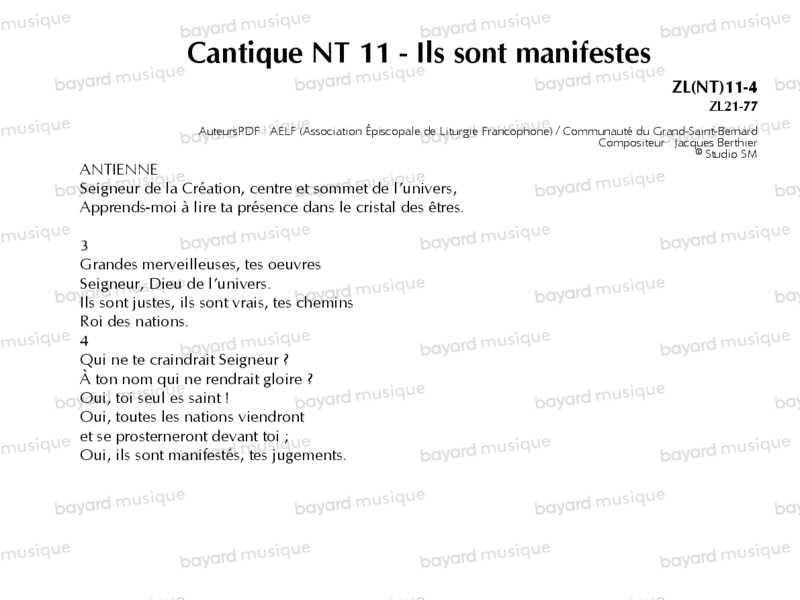 Cantique NT 11 - Ils sont manifestes - ZL(NT)11-4