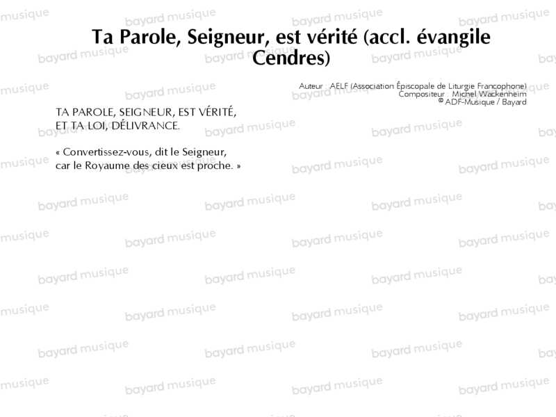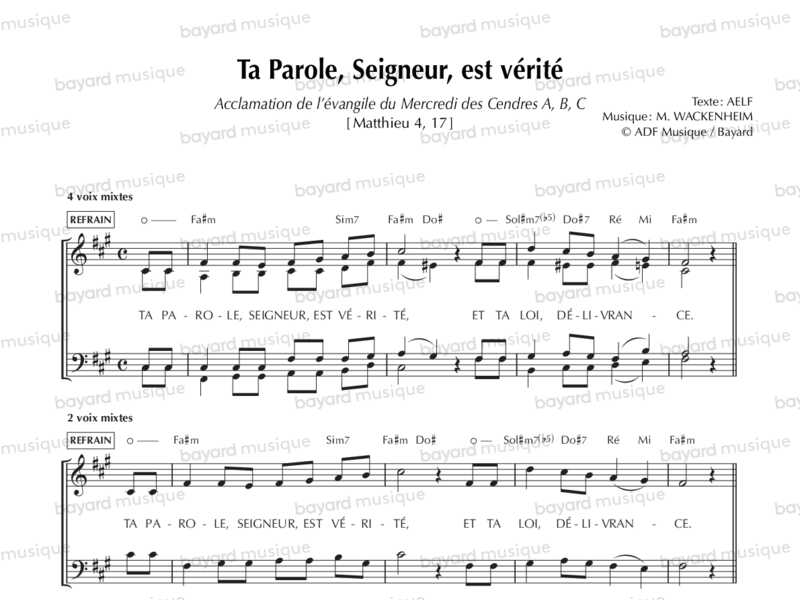 Ta Parole, Seigneur, est vérité (accl. évangile Cendres)