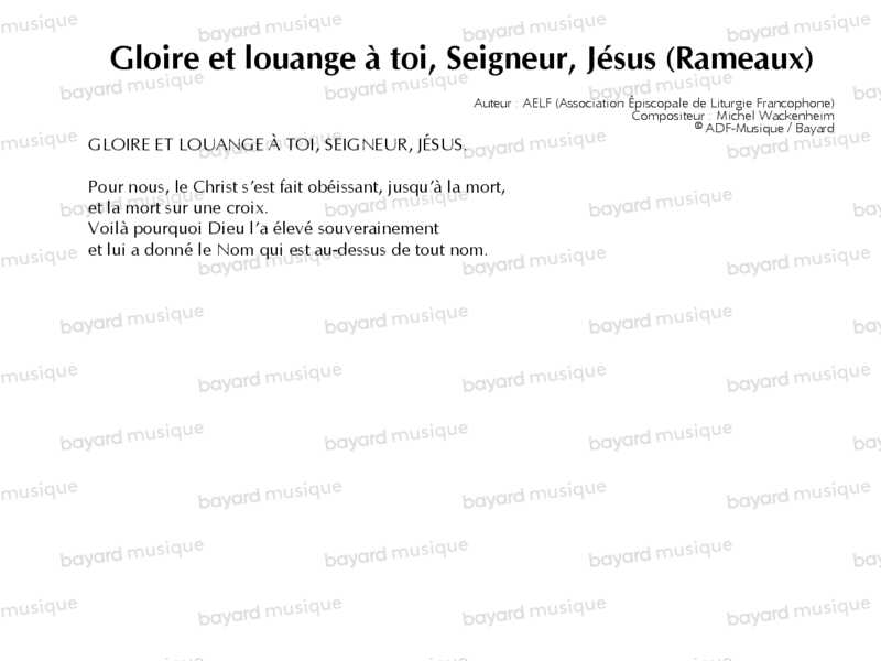 Gloire et louange à toi, Seigneur, Jésus (Rameaux)