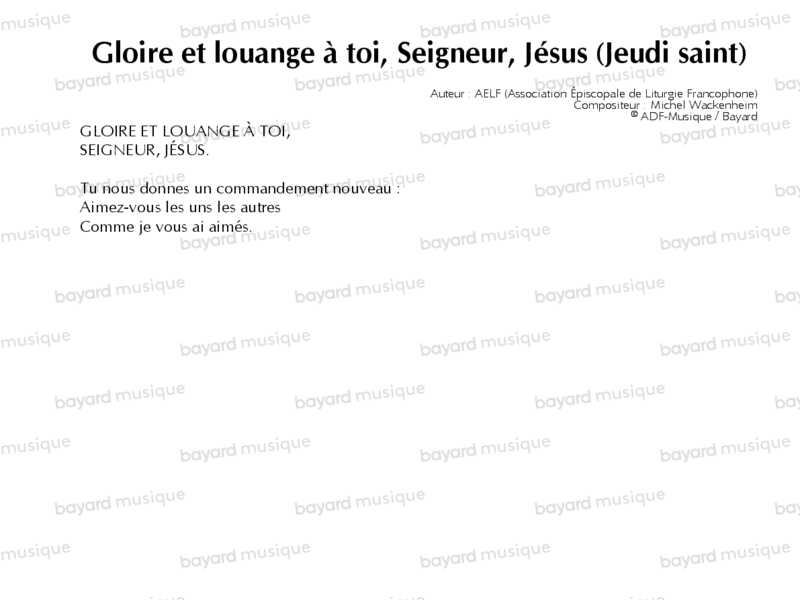 Gloire et louange à toi, Seigneur, Jésus (Jeudi saint)
