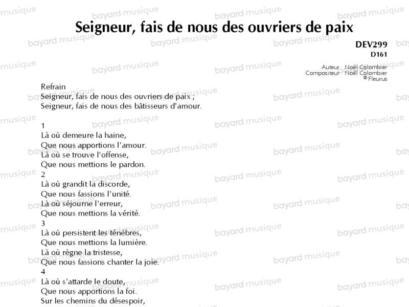 Seigneur, fais de nous des ouvriers de paix - DEV299