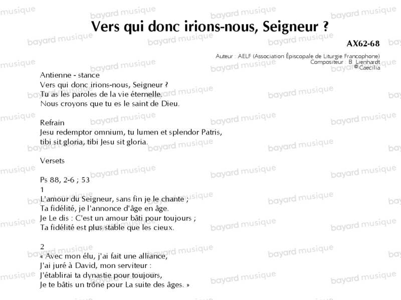 Vers qui donc irions-nous, Seigneur ? - AX62-68