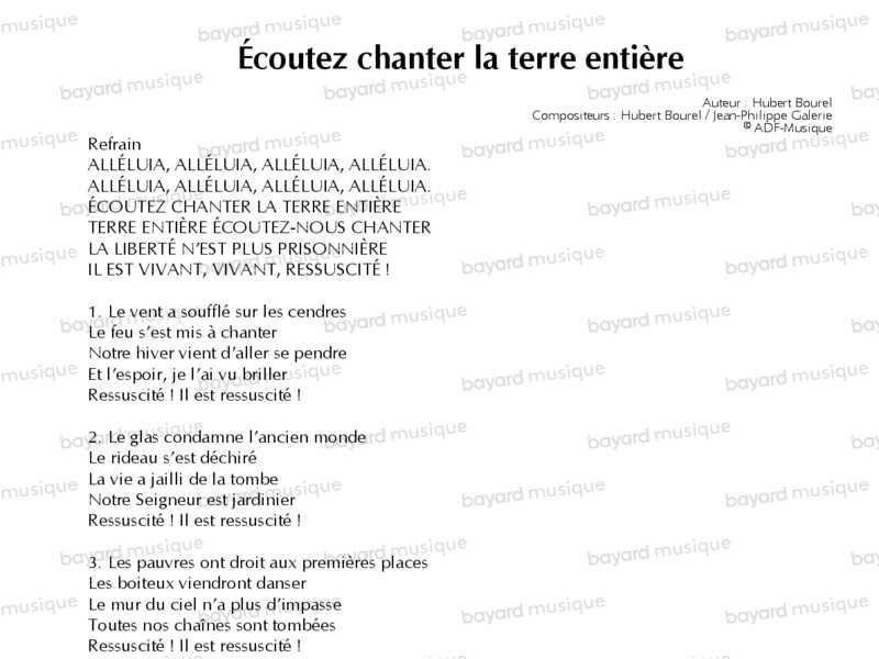 Interprété par Marie-Louise Valentin, Hubert Bourel et le chœur ADF.