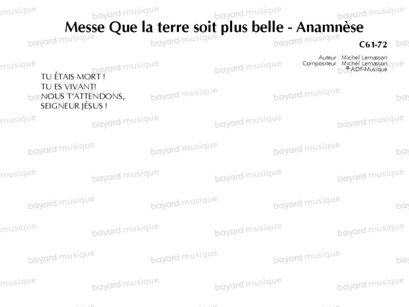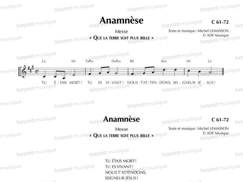 Messe Que la terre soit plus belle - Anamnèse - C61-72