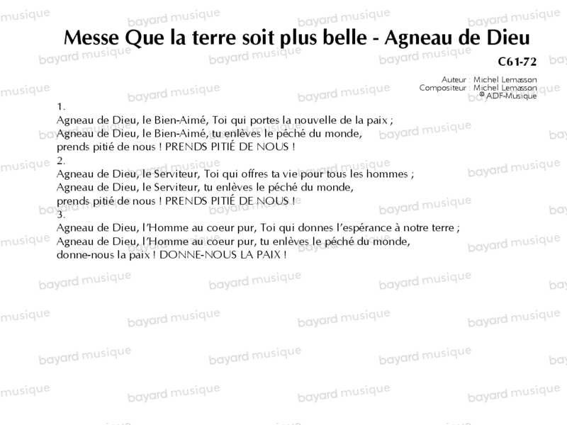 Messe "Que la terre soit plus belle" - Agneau de Dieu - C61-72