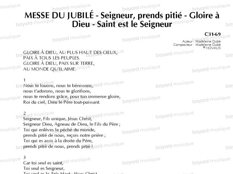 Messe du Jubilé - Seigneur, prends pitié - Gloire à Dieu - Saint est le Seigneur - C31-69