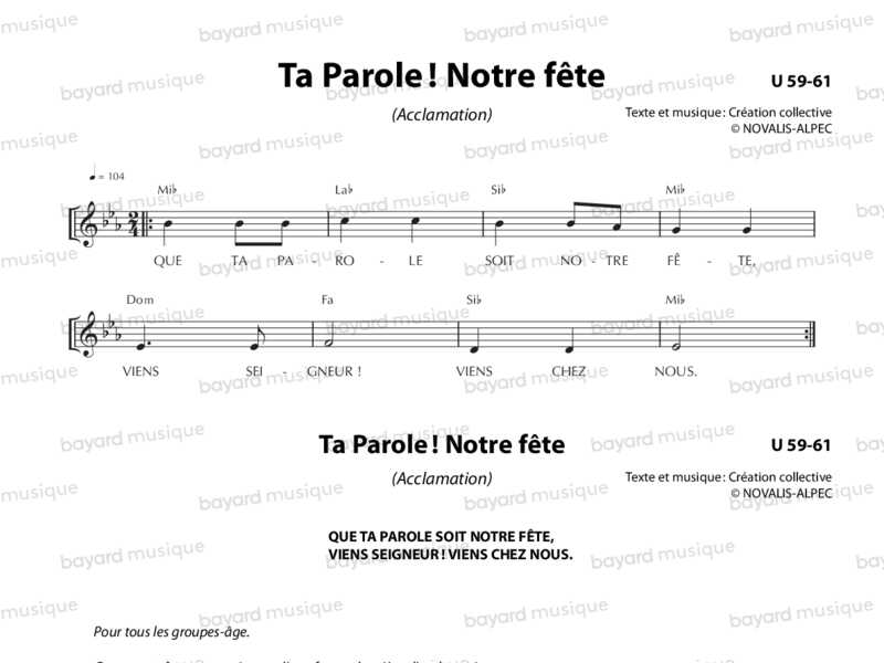Acclamation; apprentissage d'une forme de prière: acclamation.