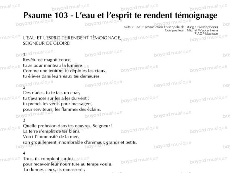 Psaume 103 - L’eau et l’esprit te rendent témoignage