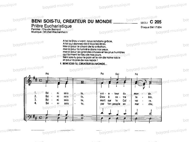 Béni sois-tu, createur du monde prière eucharistique - EDIT330