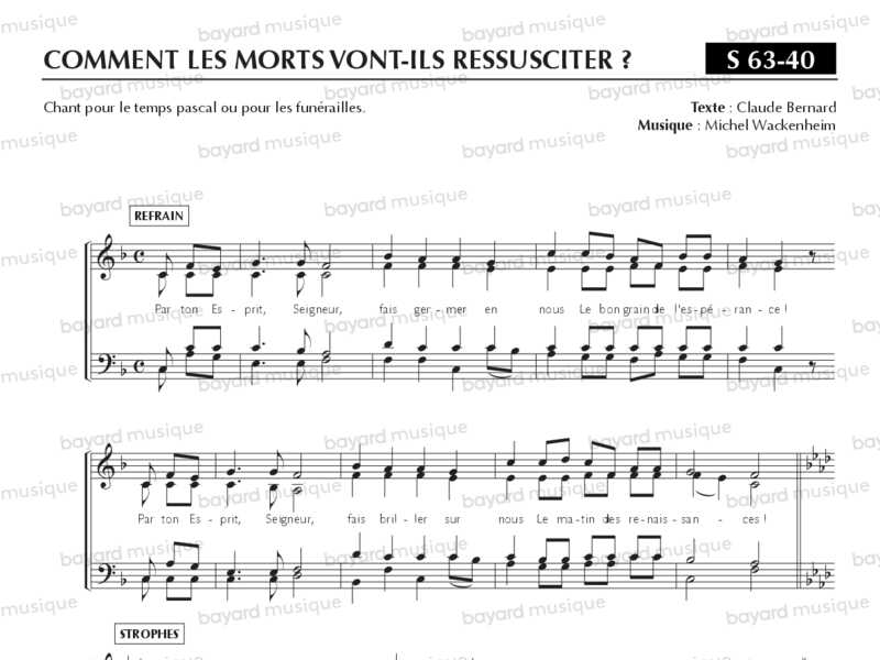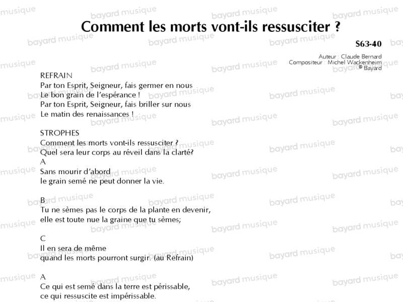 Chant écrit à la manière des cantiques du Nouveau Testament, pour le temps pascal, pour des funérailles, le 2 novembre