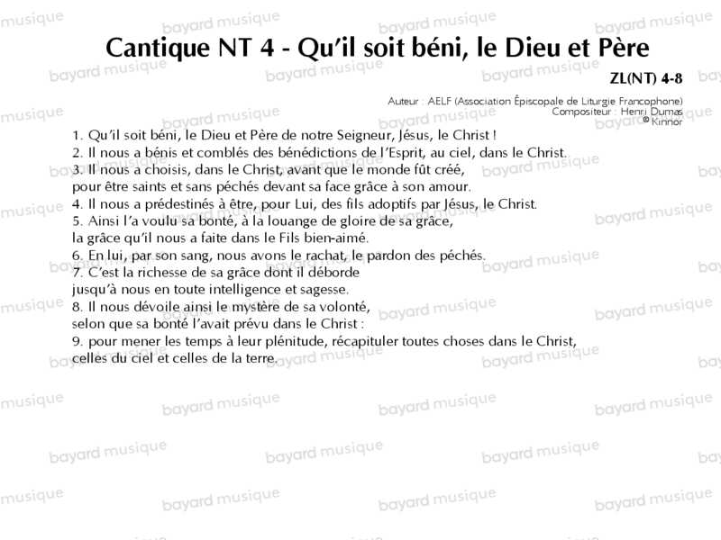Cantique NT 4 - Qu’il soit béni, le Dieu et Père - ZL(NT)4-8