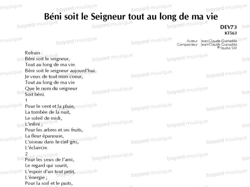 Béni soit le Seigneur tout au long de ma vie - DEV73