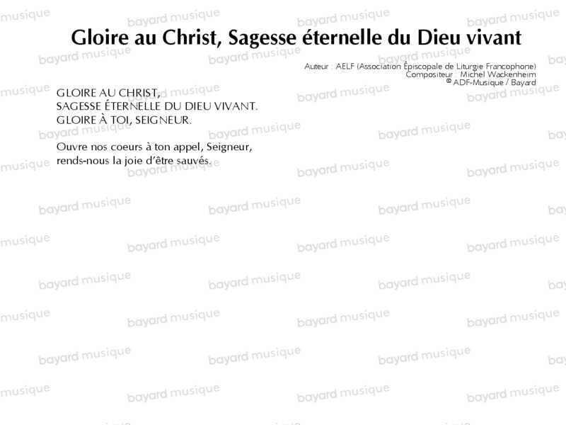 Gloire au Christ, Sagesse éternelle du Dieu vivant