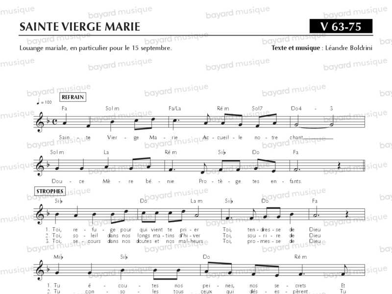 Louange mariale, en particulier pour le 15 septembre où est fêtée Notre Dame des Douleurs, qui a communié intimement à la passion de son fils et dont la maternité s\'est étendue, au pied de la Croix, à tout le Corps du Christ, qu\'est l\'Église.