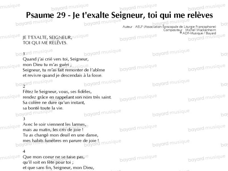 Psaume 29 - Je t'exalte Seigneur, toi qui me relèves