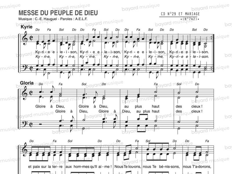 Kyrie, Gloria, Alleluia, Sanctus, Anamnèse, Agnus.