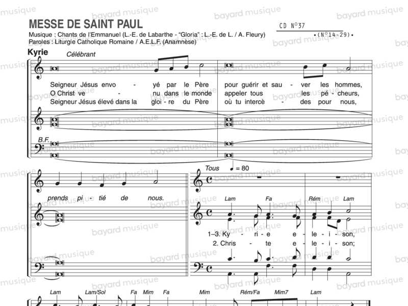 Kyrie, Gloria, Alleluia, Sanctus, Anamnèse I, Anamnèse II, Doxologie, Agnus.