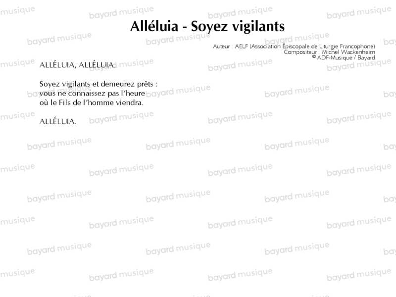 Alléluia - Soyez vigilants