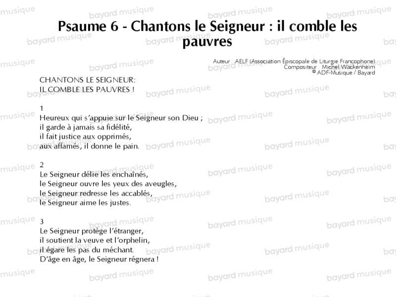 Psaume 6 - Chantons le Seigneur : il comble les pauvres